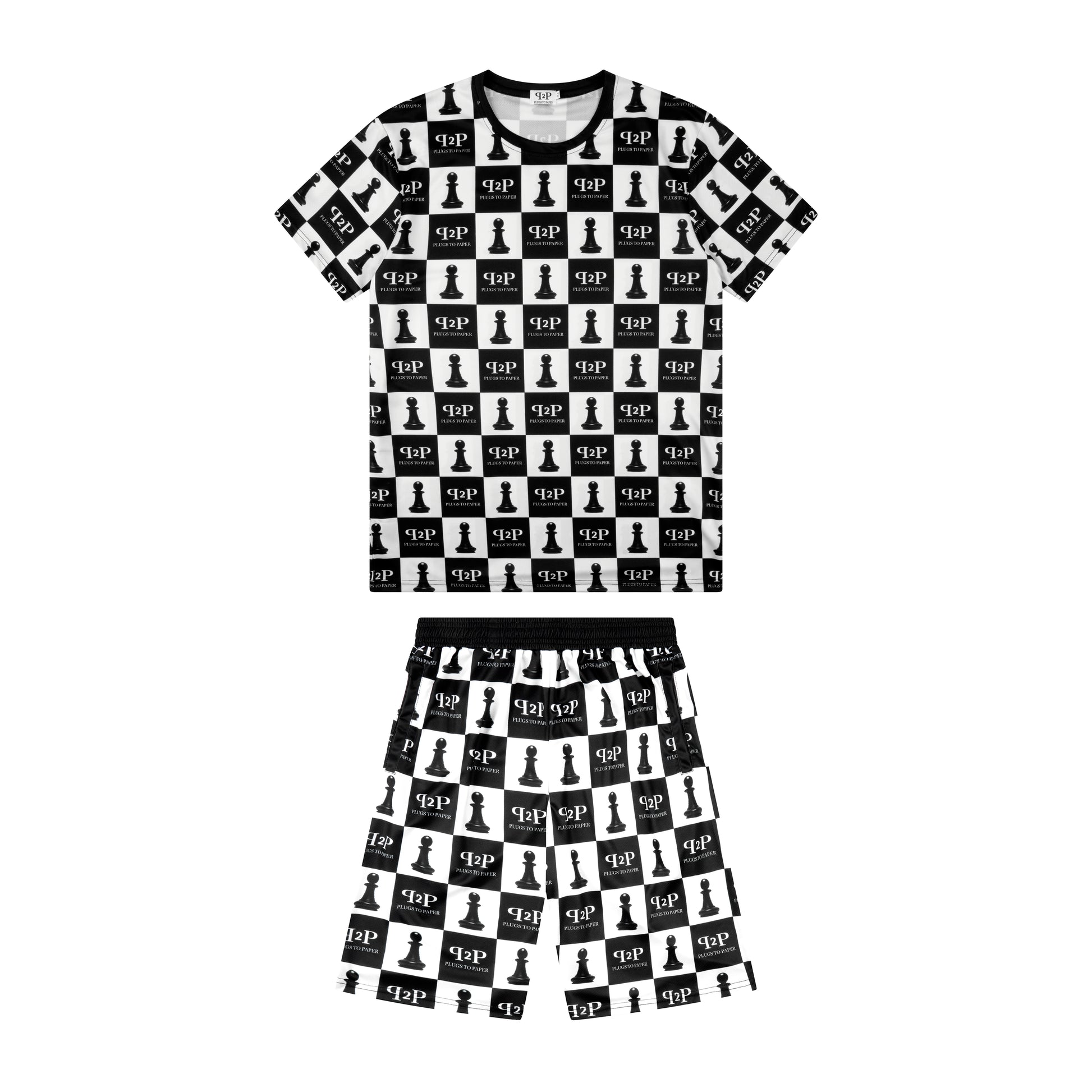 - Plugs To Paper chess board printing all over T-shirt and shorts